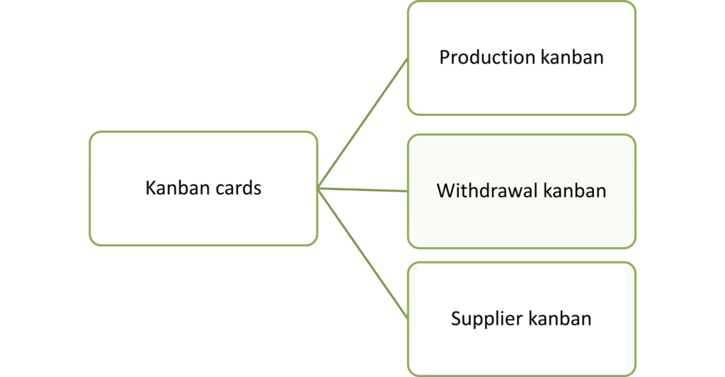 Ø The Mizusumashi (kanban and material handler) will take the Kanban card of the required item as an “authorization” to withdraw the item from the central store.
