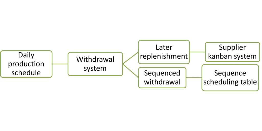 Ø Depending on the withdrawal system either “later replenishment” or “sequenced withdrawal system” is used to convey the daily production schedule.