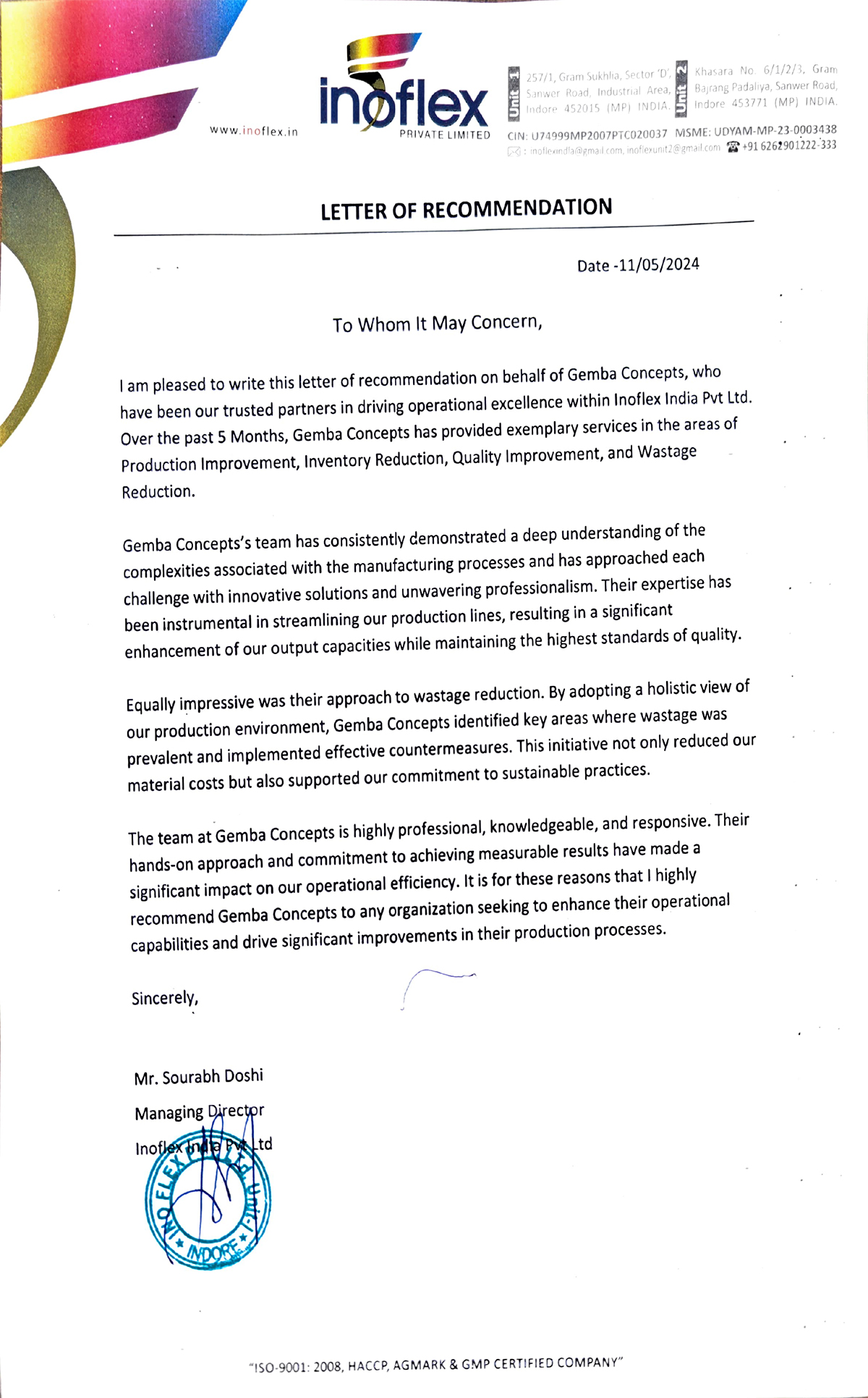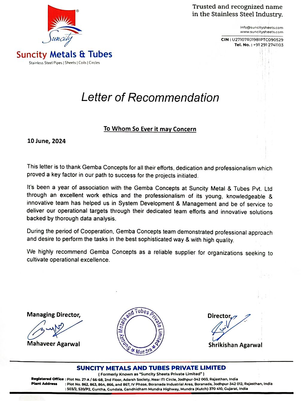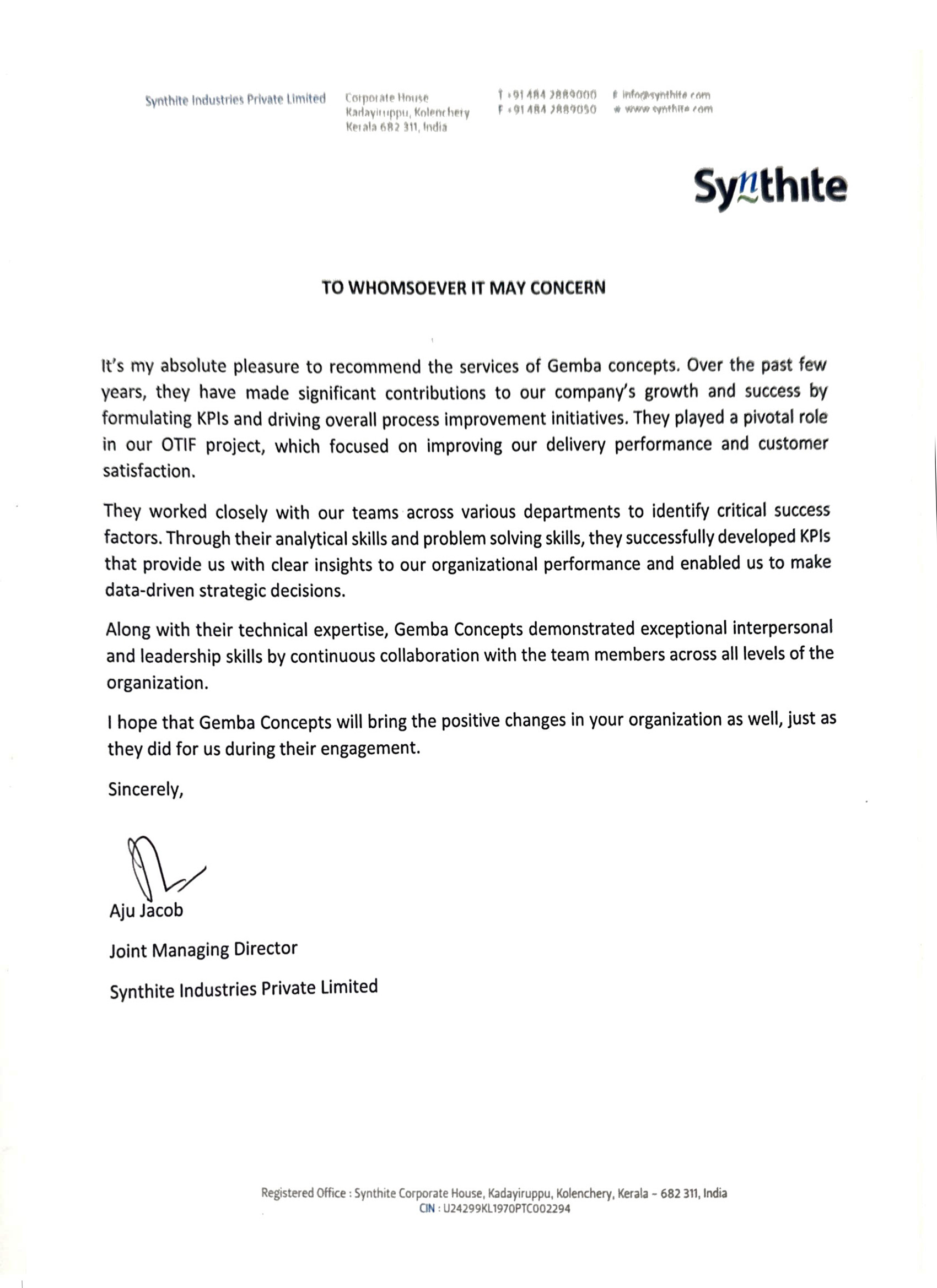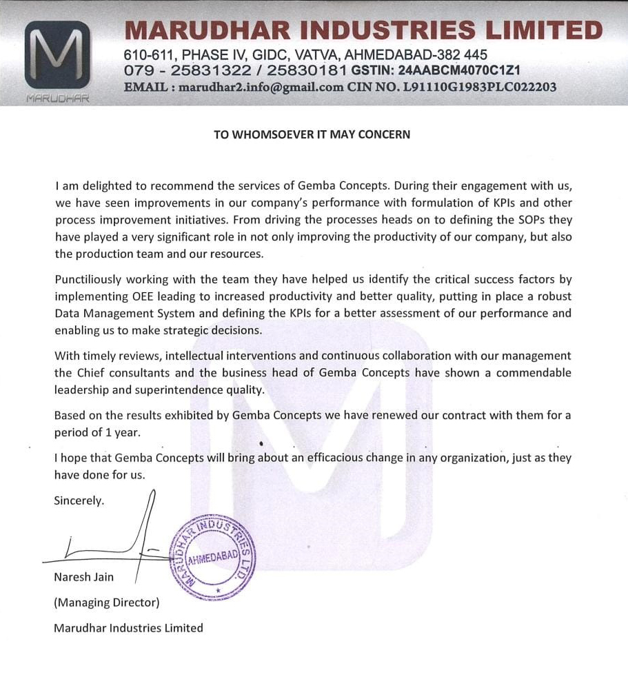 I remember writing a mail to you, where all I could feel was despair. I am glad I did not stop your work and continued to have faith. As COO of Siddharth Plast, I want to thank you and wish that you can transform more organizations such as ours.